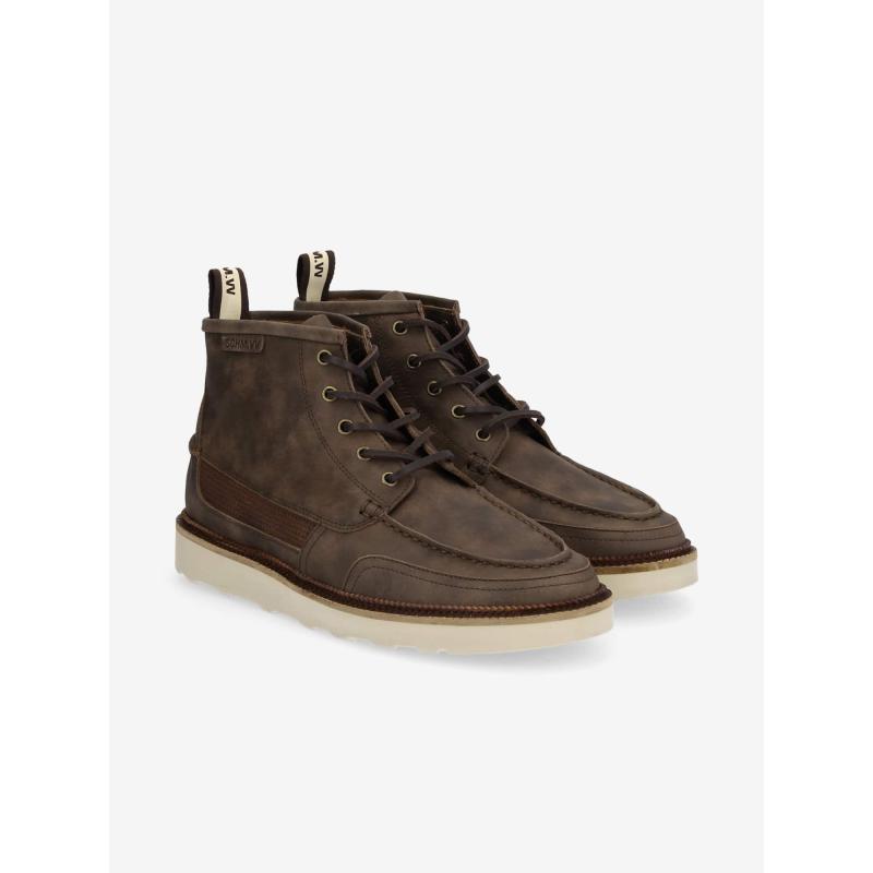 A design that combines a cool style with optimal comfort! The Dock Mid from Schmoove and its authentic look is inspired by the outdoor world and hiking boots. Its brown brushed leather upper is livened up by a perforated side stripe and topstitching. This men's boot is easy to slip on and off thanks to a nylon heel pull tab with printed logo and leather laces that slip through metal eyelets. This boot sits on a chunky, contrasting beige rubber sole.