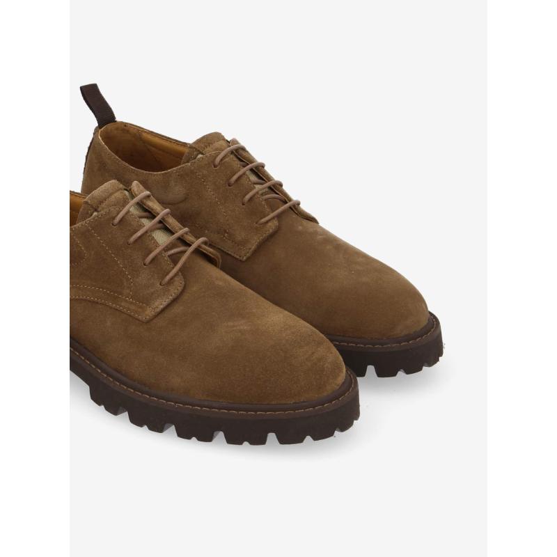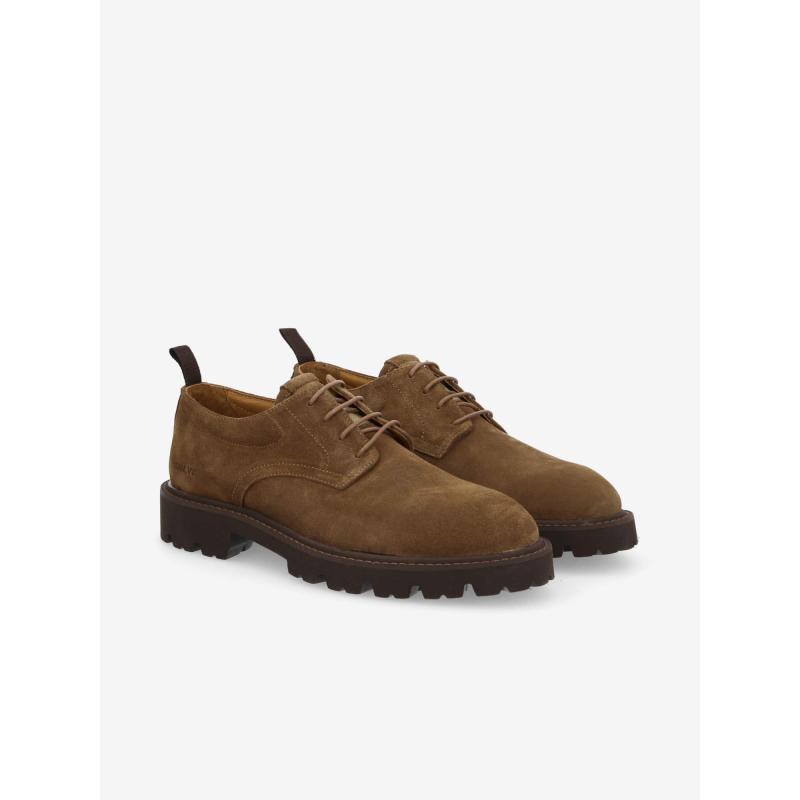 With the Brighton Derby, Schmoove has created a new men's wardrobe staple. Made from cognac-brown suede, it has an uninhibited look thanks to a round toe and chunky notched sole with a topstitched welt. This men's Derby has a light feel thanks to an eye-let free lace-up. It's rounded off by a nylon pull tab on the heel and a branded embossed logo on the side.