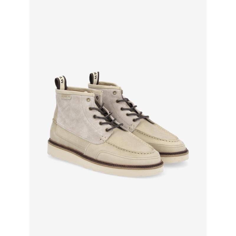 With the Dock Mid, Schmoove offers a derby with an original design. Crafted in smooth beige leather, it is enhanced by touches of perforated leather on the sides, sand velvet leather quarters and numerous stitching details. Brown leather laces fasten this high-top shoe, which rests on a thick toned-in sole with chiseled leather welt. This derby embodies the Schmoove spirit, offering city dwellers a look that's as casual as it is stylish.