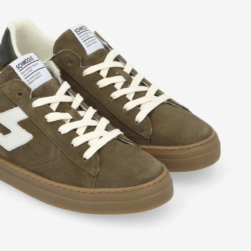 Inspired by the brand's iconic silhouette, the Spark Signature is the new urban wardrobe staple. Made from khaki suede, this Schmoove signature sneaker stands out thanks to an S-shaped side insert and a smooth white leather heel insert. This contemporary sneaker is a testament to the brand's know-how and features a rubber sole that follows the shape of the foot, reinforced by side stitching. Its stylish, sporty look will add a casual elegance to all your outfits.