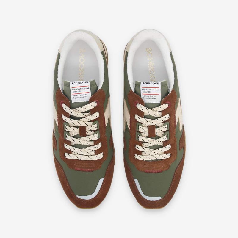 This new Athene Runner is out in a comforting, on-trend khaki polyester textile with cognac brown leather inserts. A cream-coloured nubuck heel insert and Schmoove's signature “S” logo provide a subtle and elegant contrast. This men's retro sneaker is set on an ultra-comfy midsole with a lugged outsole to ensure a perfect grip.