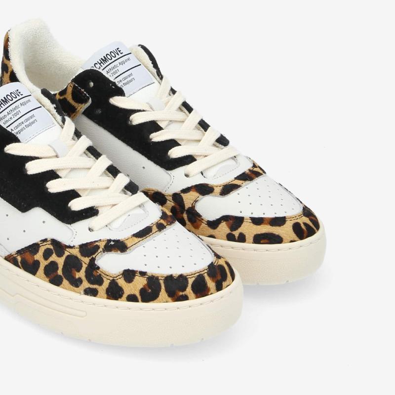 Schmoove is adding plenty of peps to men's looks with this contrasting version of the Smatch Sneaker. Inspired by the sportswear world, this sneaker boldly blends smooth white leather and leopard print suede. Discreetly trimmed with a wide nylon label on the tongue, this sneaker showcases the brand's iconic modern aesthetic. The off-white sole, reinforced by side stitching, gives this sneaker a vintage twist. A must-have for men looking for a dynamic addition to their wardrobe.
