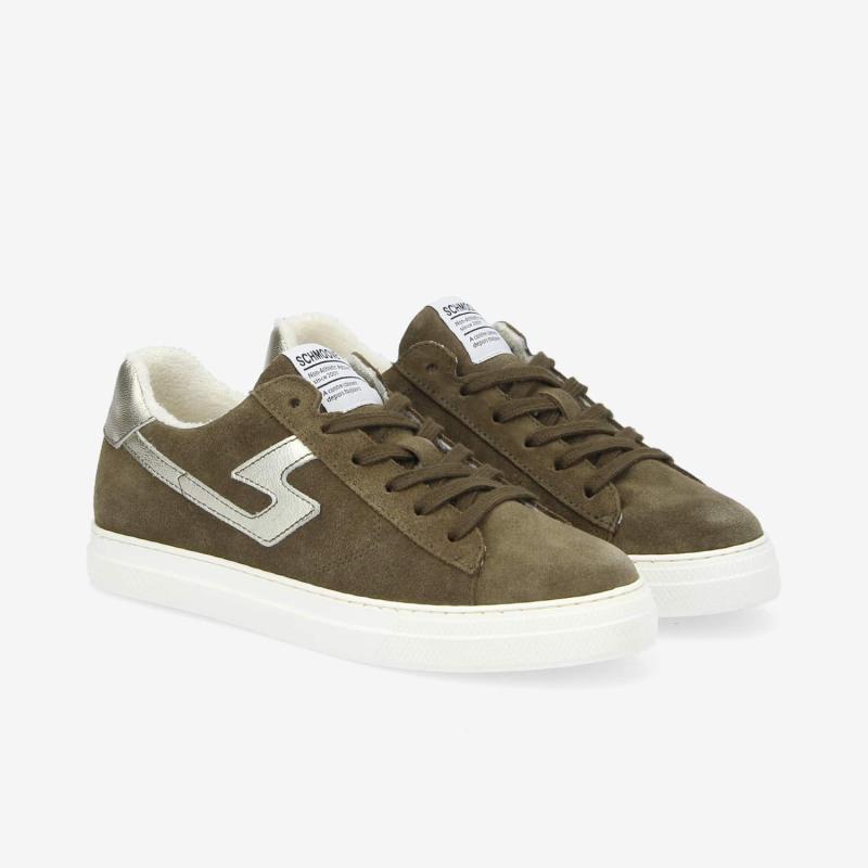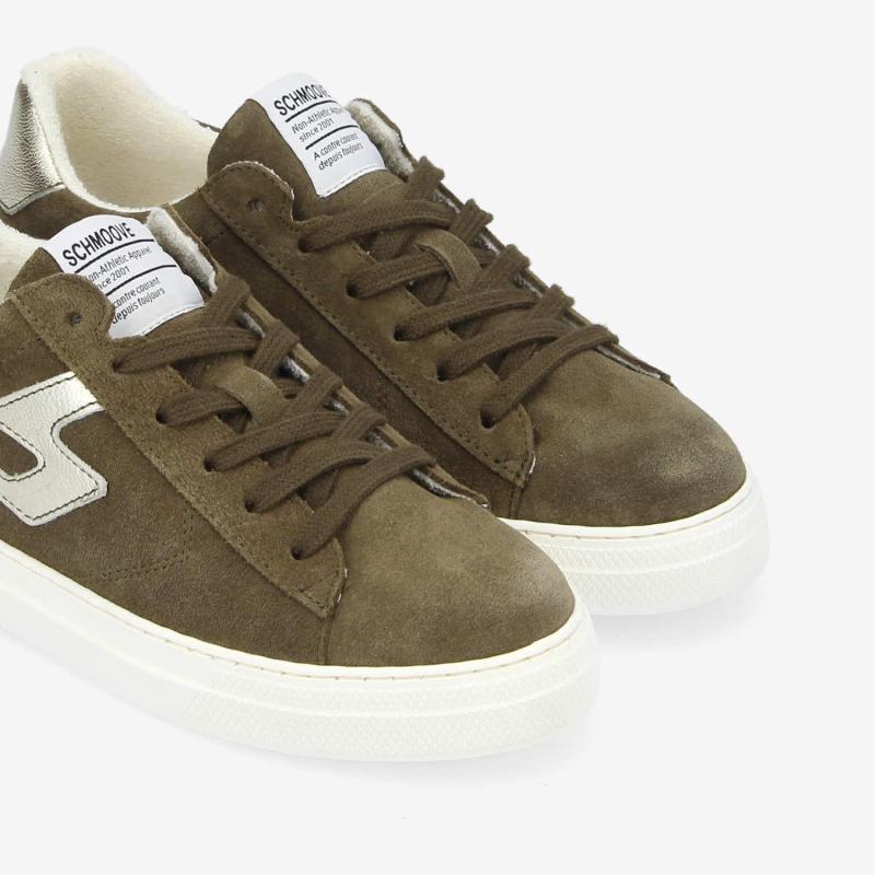Schmoove proudly presents the Spark Signature, a sneaker with undeniable charm accentuated by a khaki suede upper. It proudly shows off its heritage thanks to a champagne-coloured metallic leather insert in the shape of the brand's iconic 'S', a matching patch on the heel, and a logo label on the tongue. Set on an enveloping white rubber sole, this khaki women's sneaker will add an elegant touch to sportswear looks.