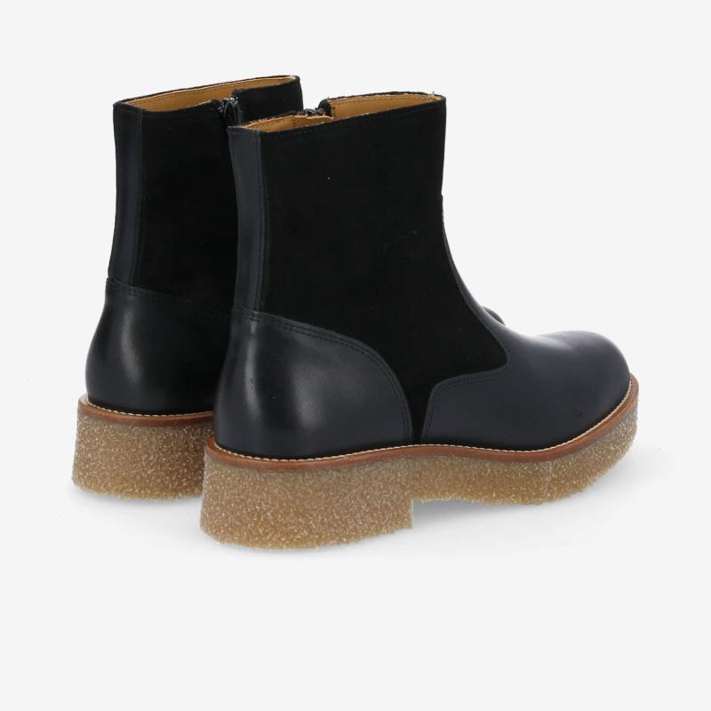Schmoove has brought out an easy-to-match black leather version of its famous women's Dora boot. This model stands out for its clean lines, enhanced by a blend of smooth leather and suede. It is set on a striking chunky crepe-style sole, enhanced by a stitched leather welt. A bold urban ankle boot that doesn't compromise on comfort. It also has an inside zip so you can slip it on and off in a flash.