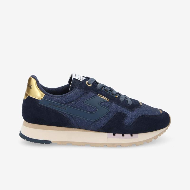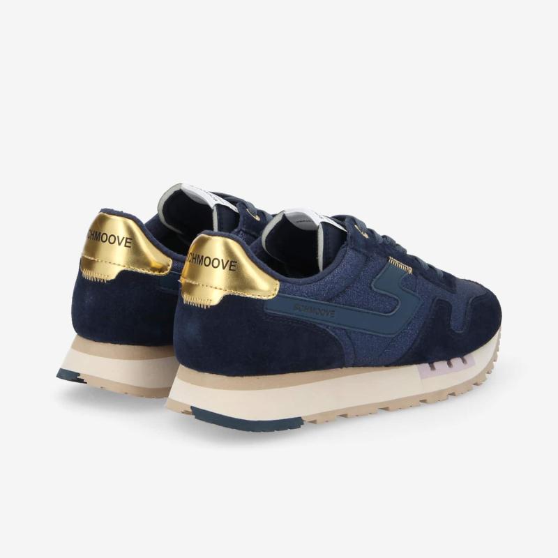The Athene Runner adopts a resolutely contemporary and stylish look. It combines metallic blue nylon canvas with navy blue accents and Schmoove's signature S-shaped yoke. At the heel, a gold leather patch with a printed logo underlines the shoe's elegance. This sneaker will enhance any urban outfit, and can be trotted on all day thanks to its ultra-comfortable sole with notched wear layer.