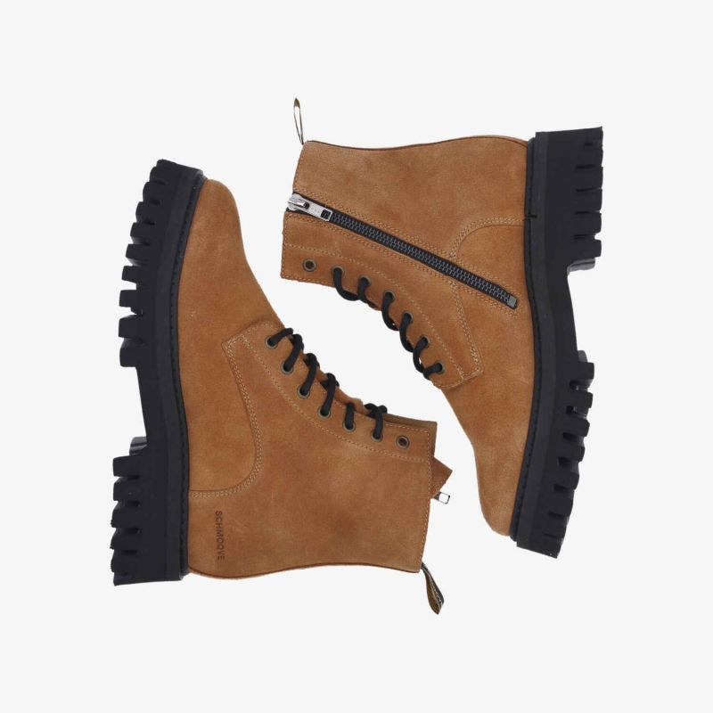 Go for a unique look with the Rotterdam Lace Up from Schmoove. Crafted from hazelnut brown suede, it's a clever rework of the women's lace-up boot, thanks to an ultra-lightweight lugged sole for a bold, modern appearance. It fastens with round hiker-style laces, has a logo pull-tab at the back plus a handy inside zip. This ankle boot has a slightly wedged insole for optimal comfort while lengthening the leg. An easy-to-wear lugged ankle boot that will add an outdoorsy touch to any urban outfit.