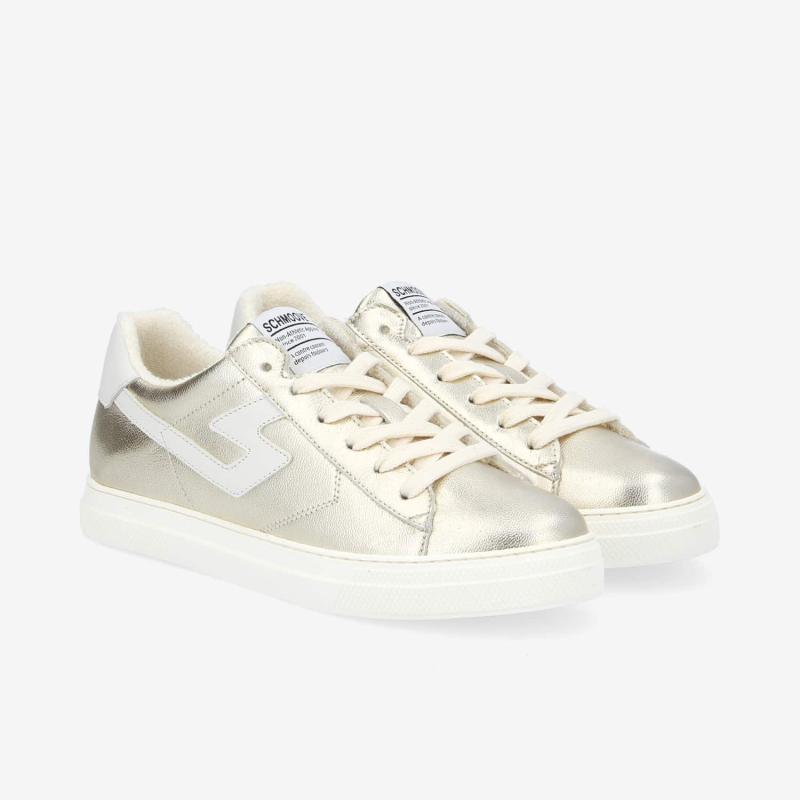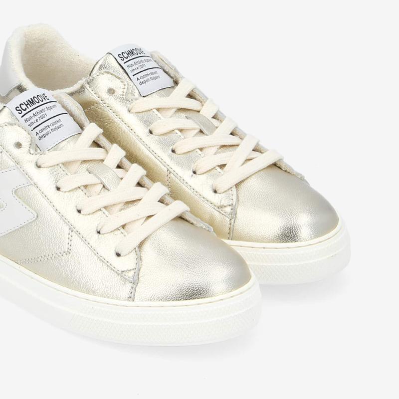 Modèle iconique de Schmoove, la Spark Signature illumine le dressing féminin avec sa teinte champagne. Elle affirme son appartenance à la marque à travers un empiècement en forme de « S » en cuir de vachette lisse blanc, un patch au talon avec inscription dorée et une étiquette cousue sur la languette. Cette basket pour femme repose sur une semelle en caoutchouc blanc, très confortable, ajoutant une touche sportive à sa ligne racée. Une basket dorée ultra tendance qui fera pétiller tous les looks de la saison. Elle est posée sur une semelle en caoutchouc qui épouse la forme du pied et renforcée par une piqûre latérale pour une meilleure résistance.