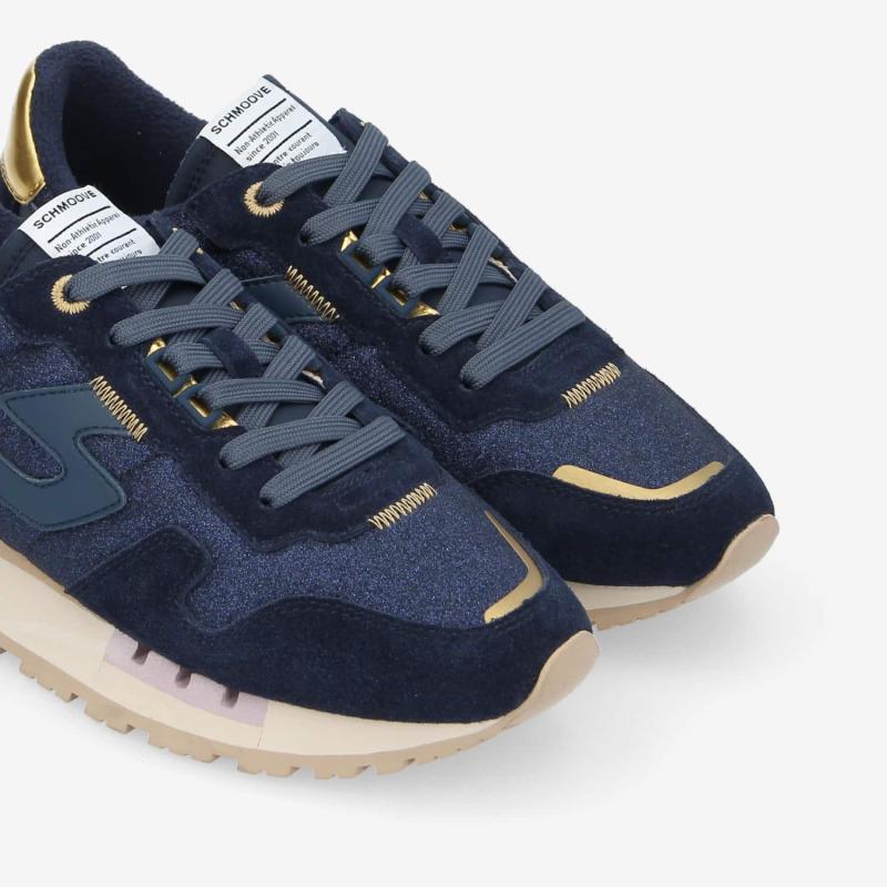 L'Athene Runner adopte un style résolument actuel et stylé. Elle marie une toile de nylon bleu métallisé à des touches de bleu marine et un imposant empiècement en forme de S, signature de Schmoove. Au talon, un patch en cuir doré arborant un logo imprimé vient souligner l'élégance de la chaussure. Cette sneaker rehaussera toutes les tenues citadines et permet de trottiner toute la journée grâce à sa semelle ultra confortable avec couche d’usure crantée.