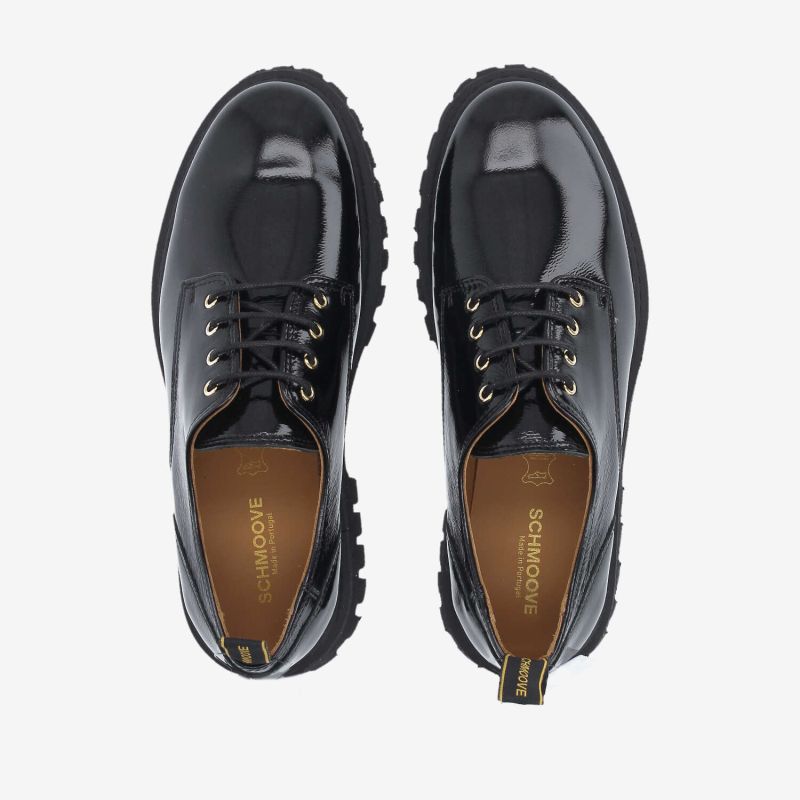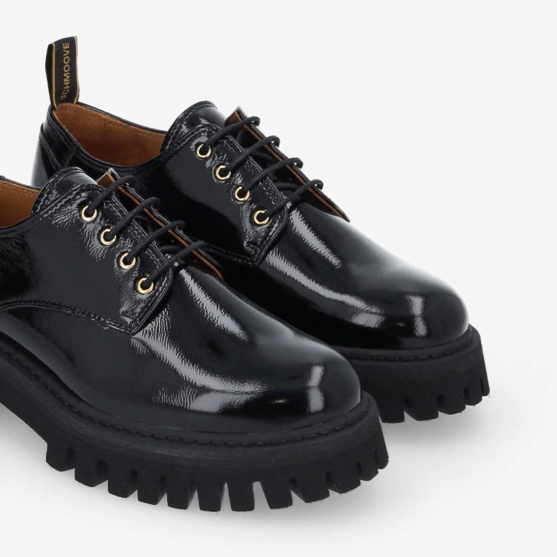 Avec le Rotterdam, Schmoove présente un derby résolument contemporain. Arborant une tige raffinée en cuir verni noir, il navigue entre sophistication et esprit rock. Il se distingue par ses lacets ronds coulissant dans des oeillets métalliques, sa tirette siglée au talon et sa semelle crantée extra légère. Avec sa semelle intérieure légèrement compensée, il rehausse discrètement la silhouette tout en procurant un confort indéniable. Ce derby noir pour femme re-dynamisera le chic féminin, ajoutant une touche rebelle à toutes les tenues !